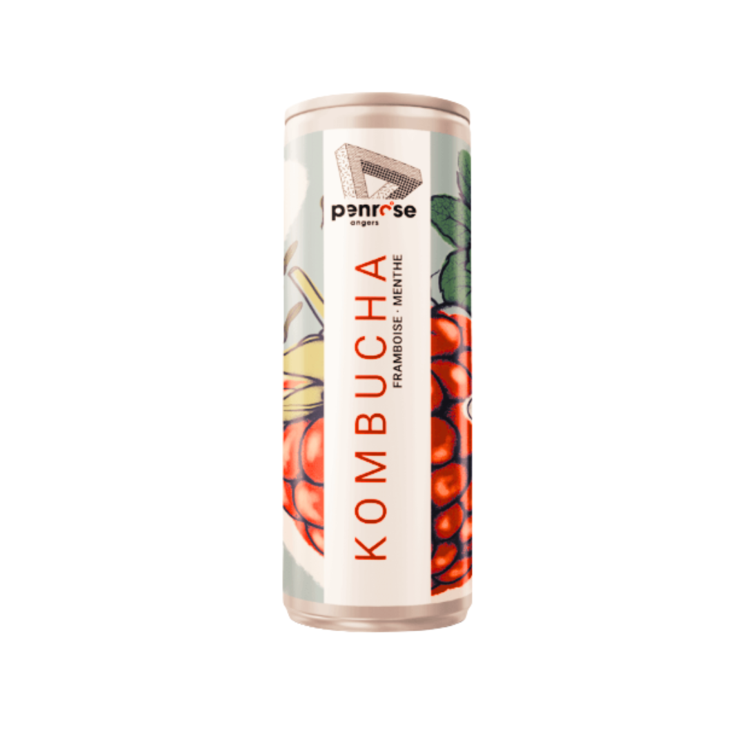 Le kombucha Penrose est finement brassée à Angers, dans l'ouest de la France. Il est préparé avec du thé vert Sencha. Il est associé à la framboise pour son pep's et à la menthe pour sa fraicheur.